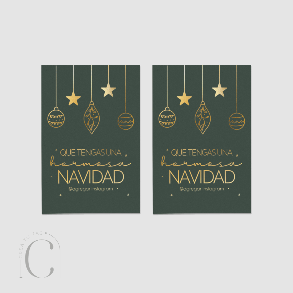 Edición navideña 2025 En ésta propuesta encontrarás toda la papelería que necesitas para sorprender a tus clientes. Detalles: Tag rectangular con foil Opalina mate *No incluye cinta*
