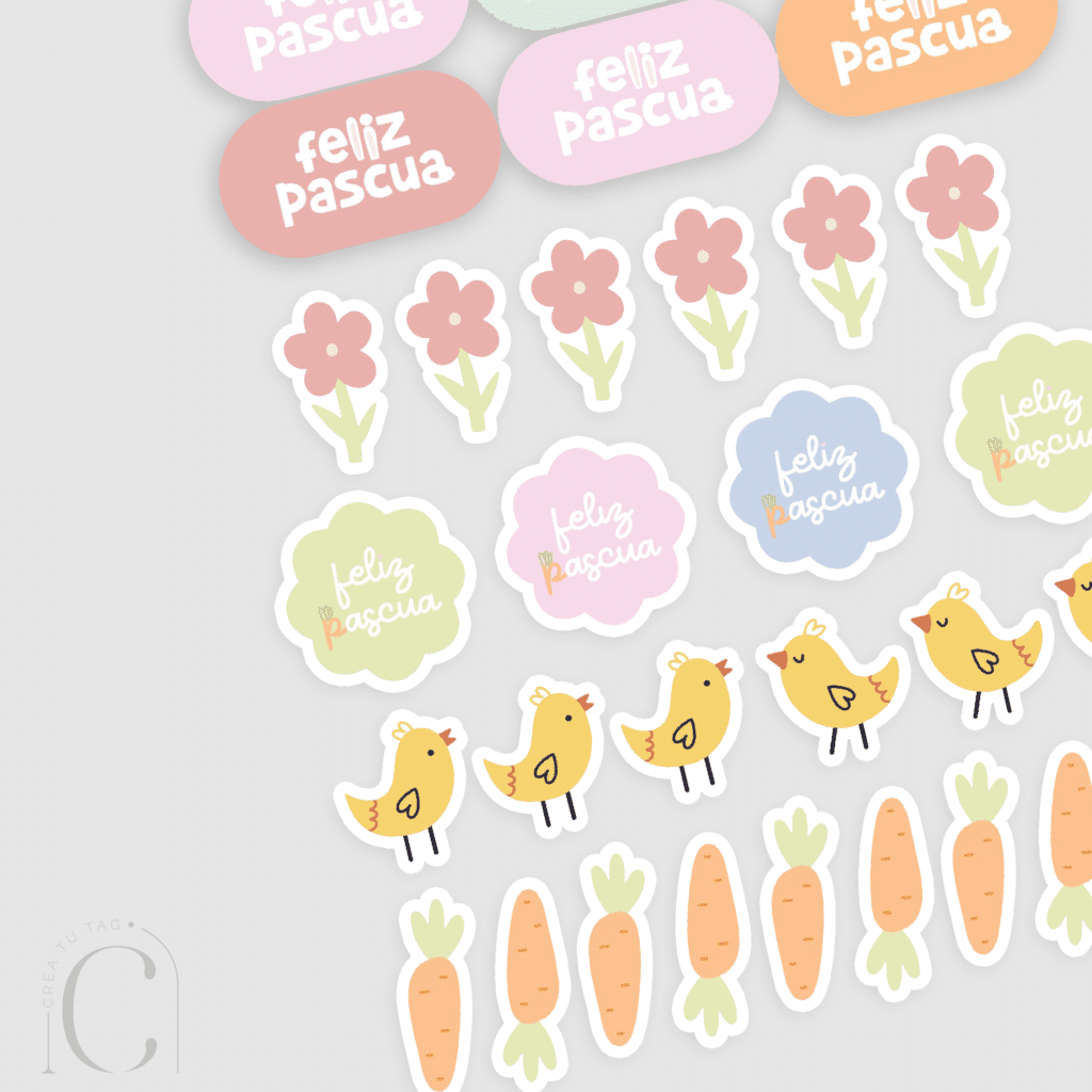 Edición pascua 2024 En ésta propuesta encontrarás toda la papelería que necesitas para sorprender a tus clientes. Plancha de stickers con diseños variados para decorar tus cajas o productos. Detalle: - Autoadhesivos brillante - Diseño único